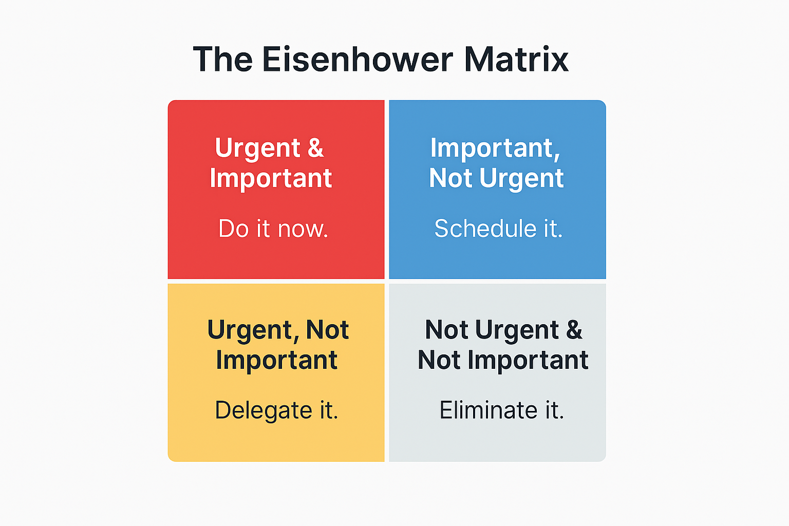 • Important but Not Urgent – Schedule it. Tasks that support long-term goals and growth.
