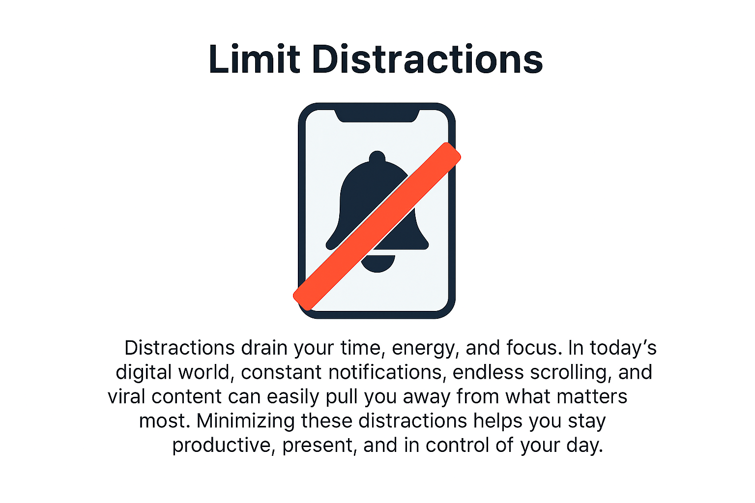 Distractions drain your time, energy, and focus. In today’s digital world, constant notifications, endless scrolling, and viral content can easily pull you away from what matters most. Minimizing these distractions helps you stay productive, present, and in control of your day.