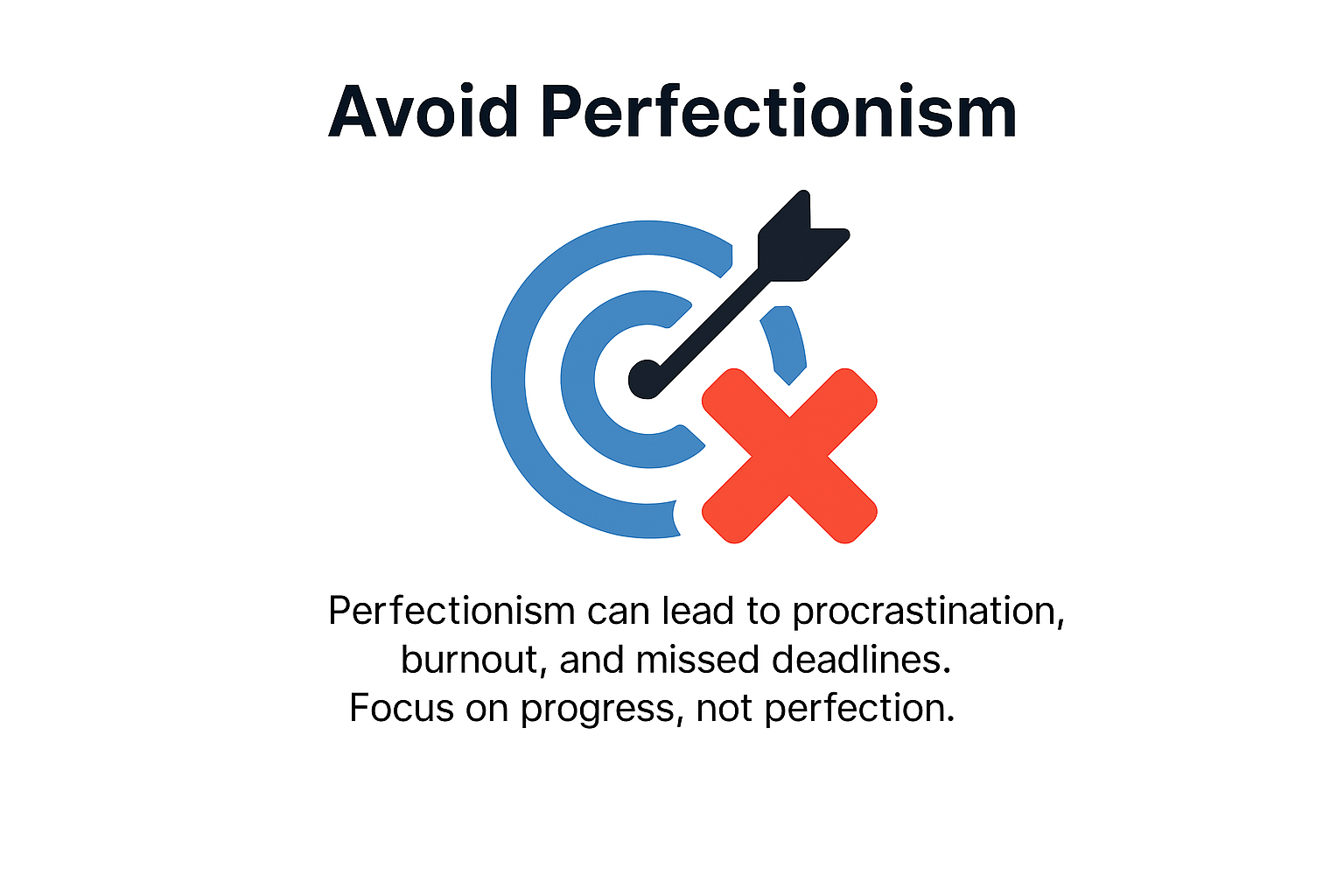 Perfectionism can lead to procrastination, burnout, and missed deadlines. Focus on progress, not perfection.]